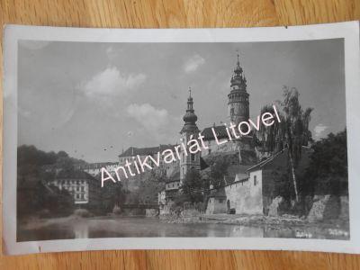 Český Krumlov. Starší černobílá pohlednice. Menší formát 8,7 x 13,8 cm. Vypsaná, razítko, známka. Běžně opotřebovaná, jinak velmi dobrý stav. Velmi zajímavá a dekorativní pohlednice.