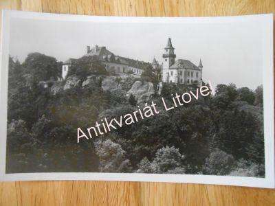 Český Ráj - Hrubá Skála. Starší černobílá pohlednice. Menší formát 8,7 x 13,8 cm. Nákladem K. Č. T. Rovensko pod Troskami. Neypsaná. Běžně opotřebovaná, jinak velmi dobrý stav. Velmi zajímavá a dekorativní pohlednice.
