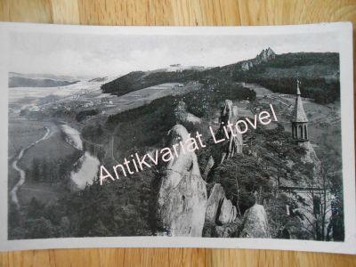 Český ráj - Malá Skála - Pantheon. Starší černobílá pohlednice. Menší formát 8,7 x 13,8 cm. Nevypsaná. Běžně opotřebovaná, jinak velmi dobrý stav. Velmi zajímavá a dekorativní pohlednice.