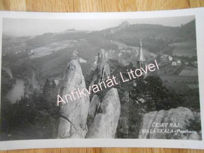 Český ráj - Malá Skála - Pantheon. Starší černobílá pohlednice. Menší formát 8,7 x 13,8 cm. Nevypsaná. Běžně opotřebovaná, jinak velmi dobrý stav. Velmi zajímavá a dekorativní pohlednice.