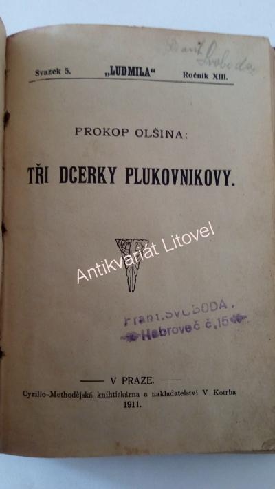 Praha, nakl. V. Kotrba 1911. Váz., bez vyd., 192 s. Pro ženy. Převazba. Mírně odřené desky. Lehce odřené hrany desek. Mírně naprasklý hřbet. Mírně ušpiněné stránky. Dobrý stav.