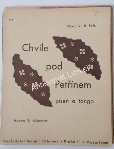 - notový dvojlist Chvíle pod Petřínem – píseň a tango