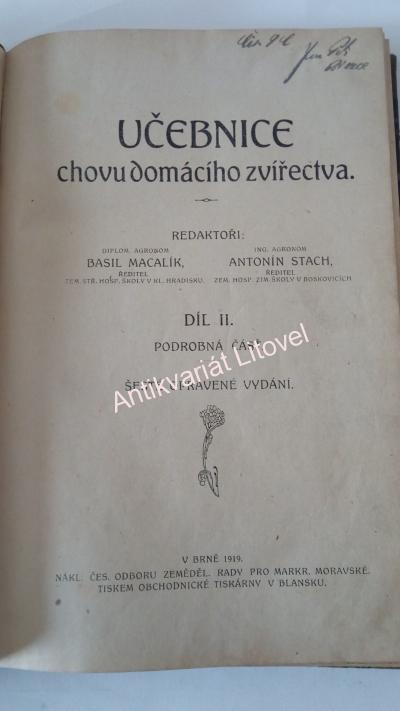 - Učebnice chovu domácího zvířectva, díl II.